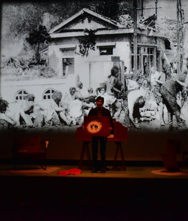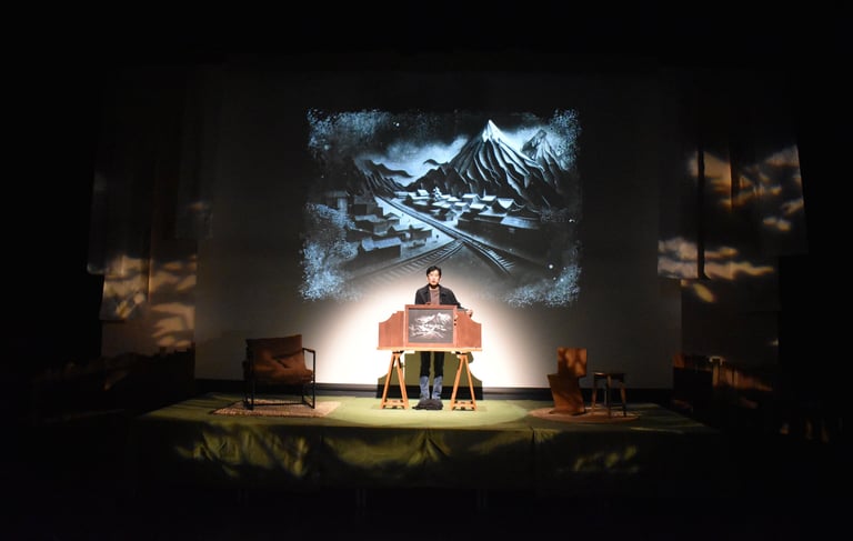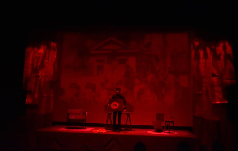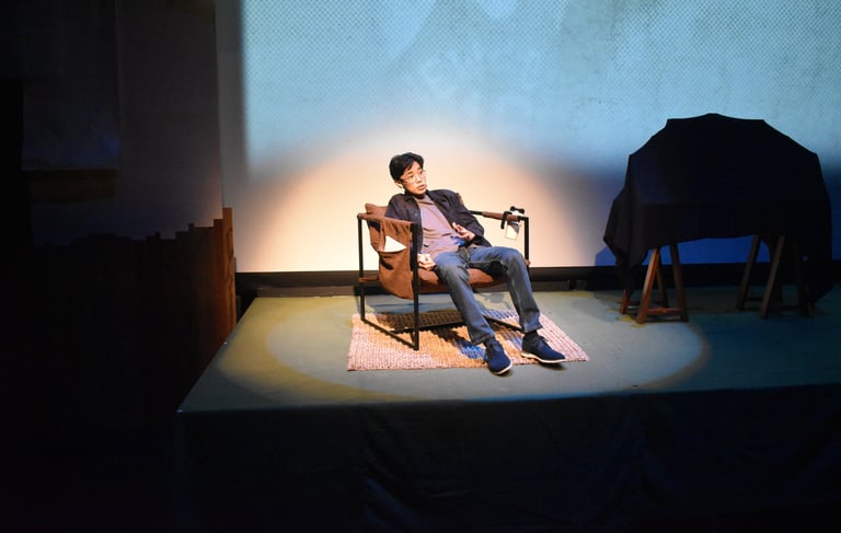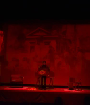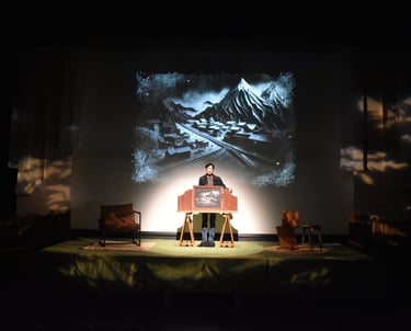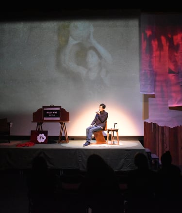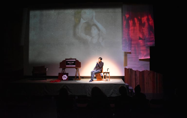 This production was a compelling new work that followed the journey of a podcaster uncovering the story of Wat Misaka—a trailblazing basketball player who led his team to the 1944 NCAA championship during the height of World War II. This project marked both my first experience lighting a one-person show and my first professional opportunity outside of my university. The minimalist staging demanded a lighting design that could subtly shift tone, time, and place, supporting the emotional arc of the narrative while maintaining visual interest throughout.