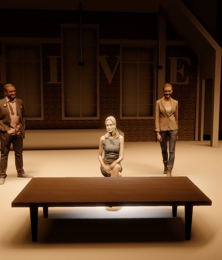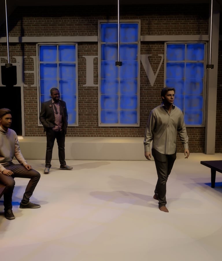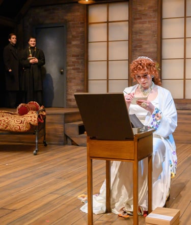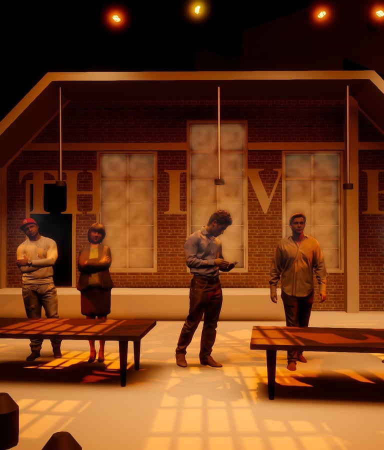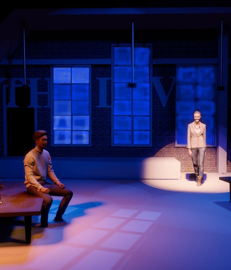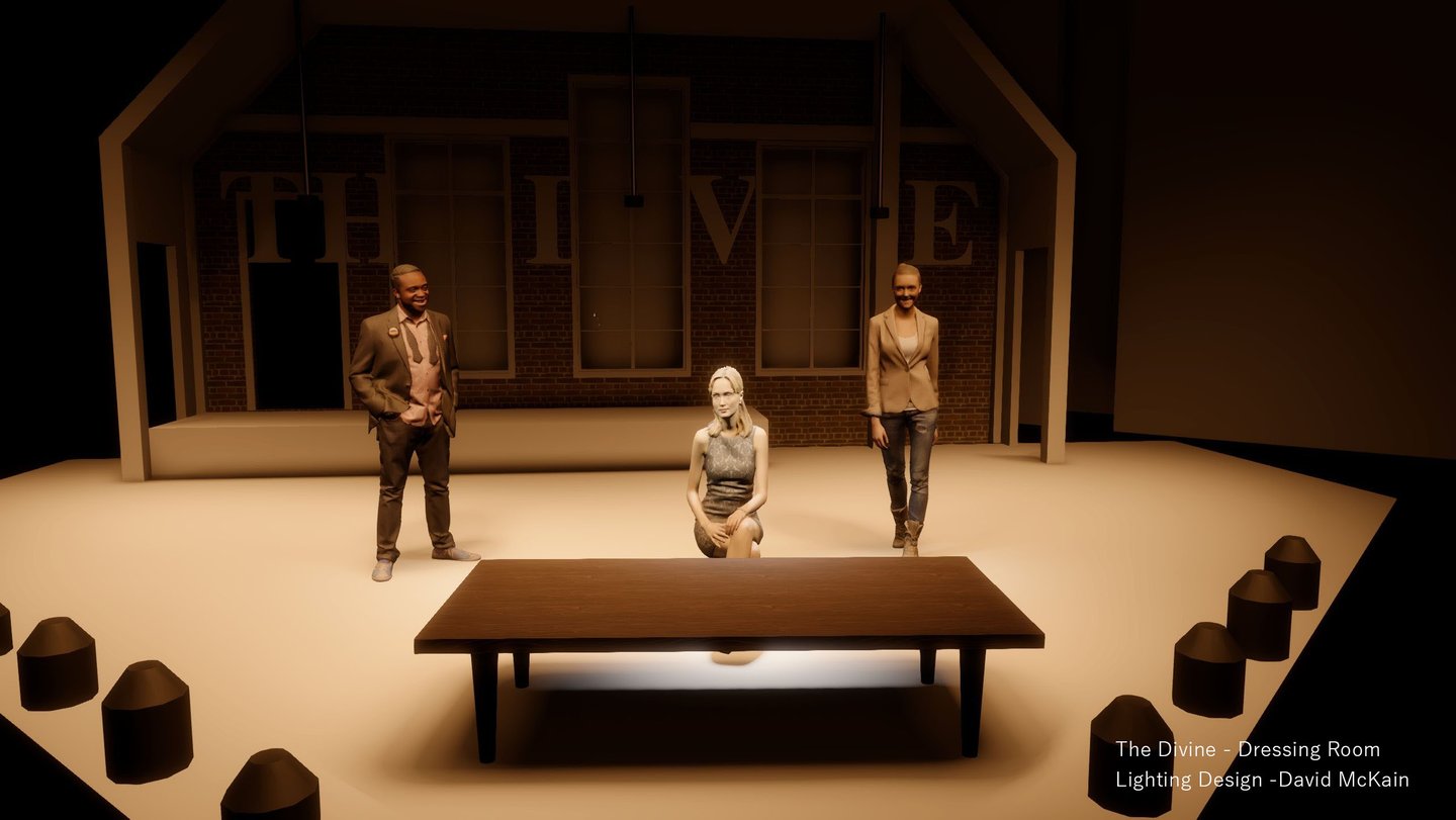 The Divine marked my first mainstage design, and it was a powerful introduction to storytelling on a larger scale. This dramatic piece explores the contradictions of performance—revealing its capacity to both obscure and illuminate truth. The narrative is driven by morally complex characters who make grounded, often unidealized choices, which challenged me to create a lighting design that could support the emotional weight and psychological nuance of the piece. It was an opportunity to use light not just for atmosphere, but to subtly underscore the tension between illusion and authenticity.